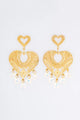 Bold heart-shaped statement earrings with Swarovski crystals, crafted by hand in 970 sterling silver with 24k gold plating.